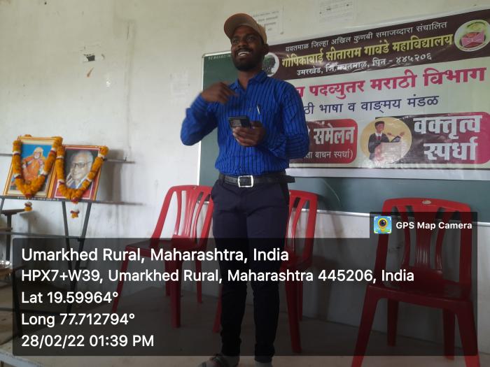 Mr. Krishna Shelke, M. A. Marathi student his speech on Elocution Competition on 28/02/2022